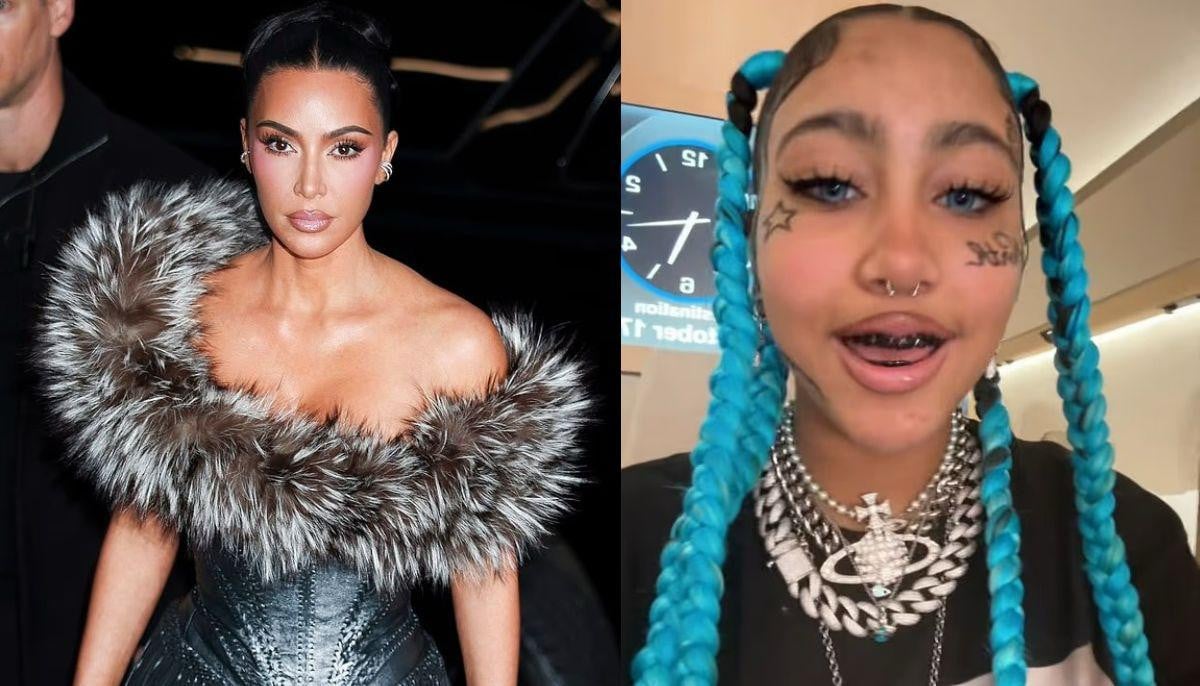 The drama started when 12-year-old North appeared in a TikTok clip with temporary tattoos, fake piercings, grillz and blue contact lenses.
