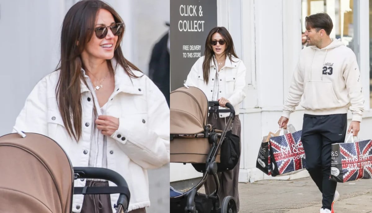 Michelle Keegan looked effortlessly chic in a gray hoodie and brown flared leggings as she stepped out solo to do some shopping in Essex with her daughter Palma on Monday.